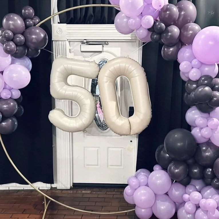 TRIPLE BACKDROP WITH 55 FEET OF BALLOONS